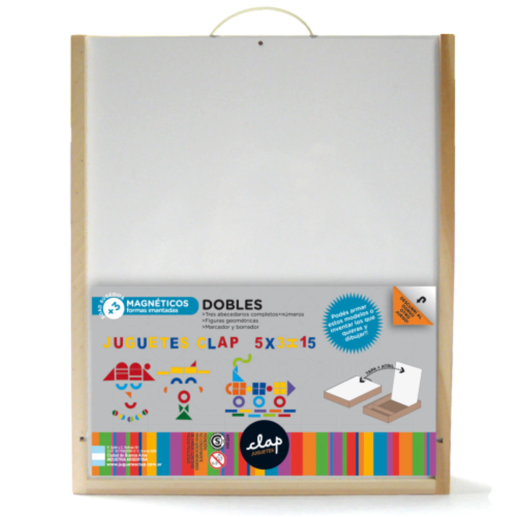 Caja, tapa de chapa esmaltada con pintura epoxi, figuras de goma eva de 3mm. imantada. Marcador para pizarra + borrador.
