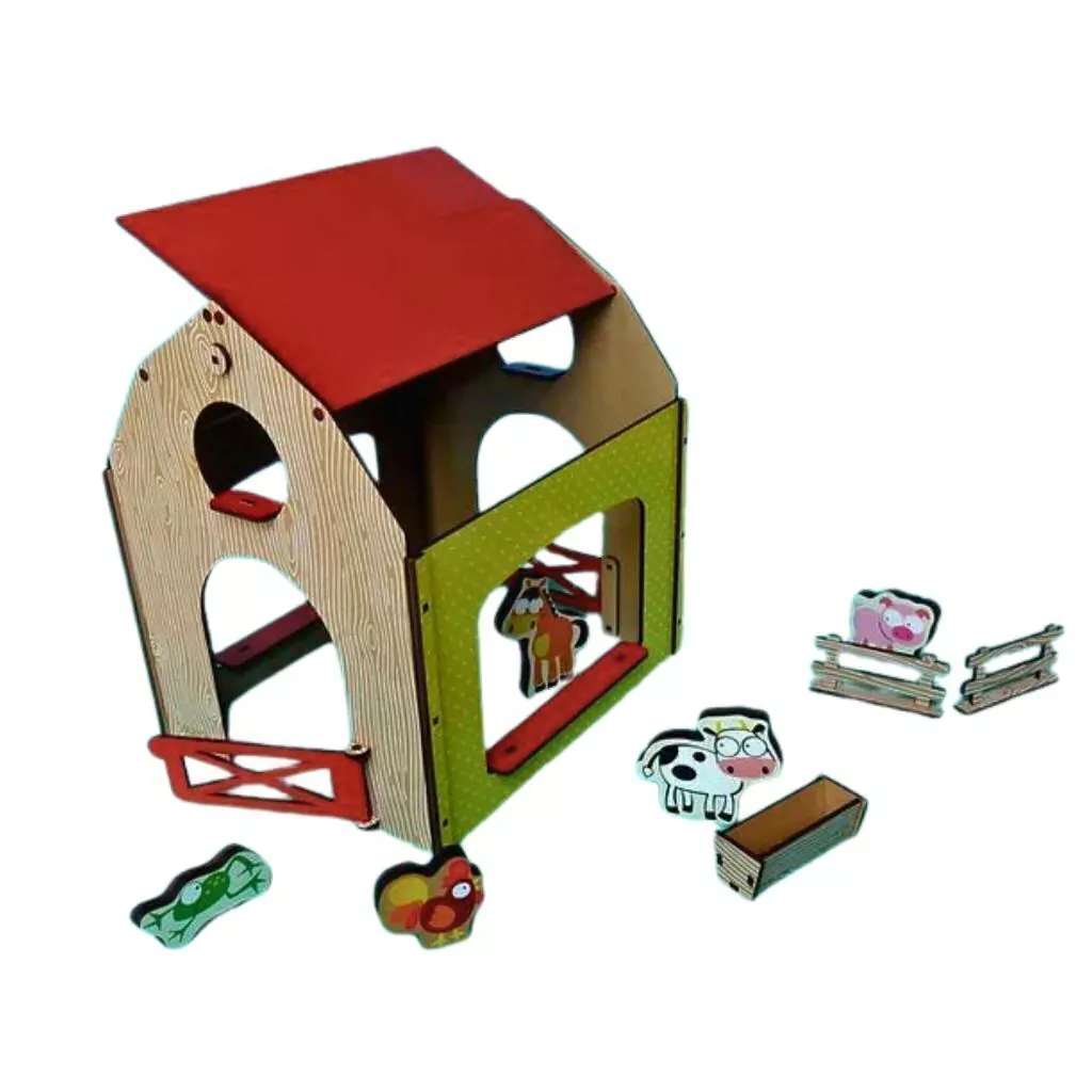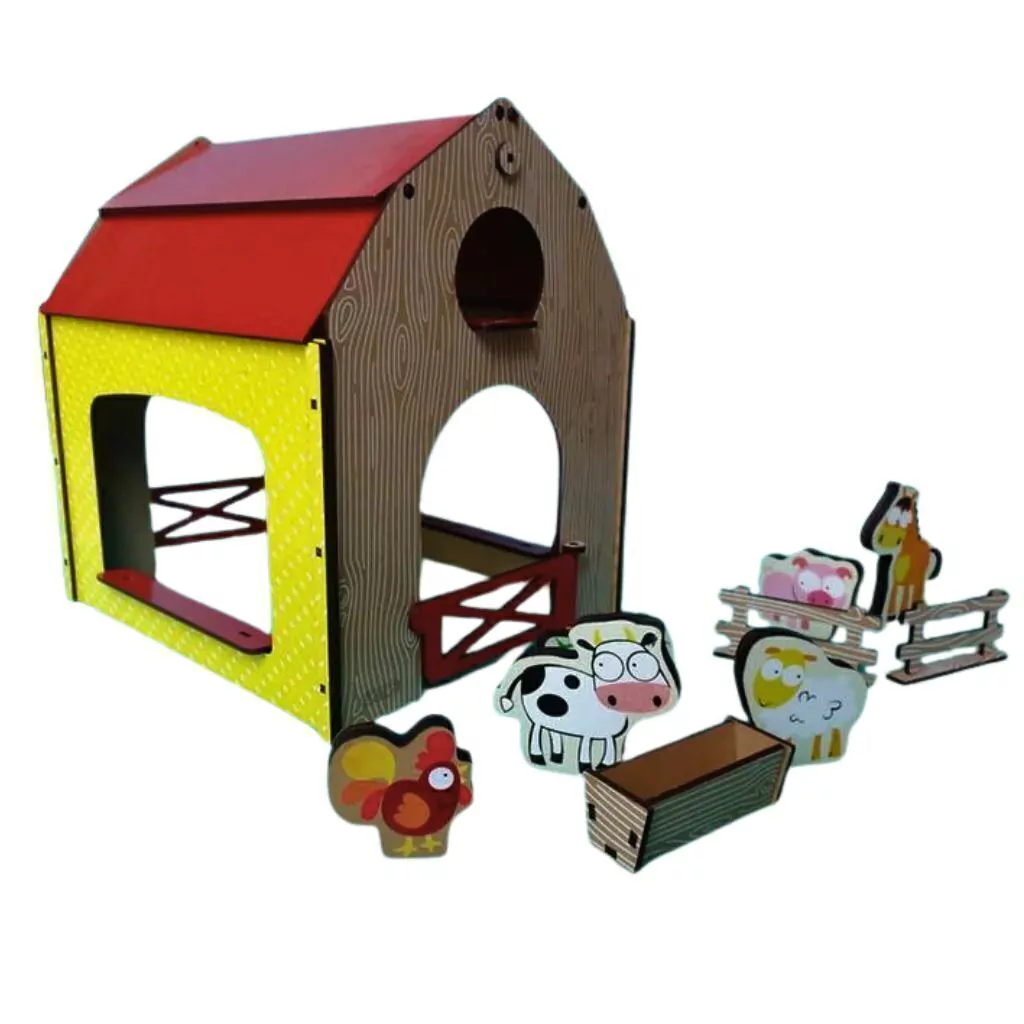 Incluye granja de madera con 5 animalitos para jugar. Incluye bebedero y corrales. El techo se abre para facilitar el ingreso al establo