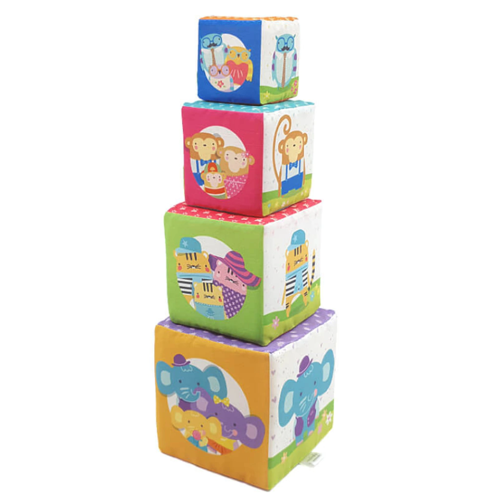 4 CUBOS / Goma espuma forrada en tela estampada lavable